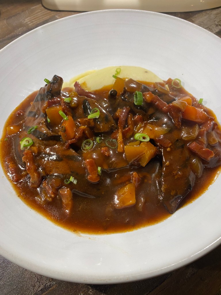 Liver and Bacon Hotpot with Root Vegetables and Mashed Potat0