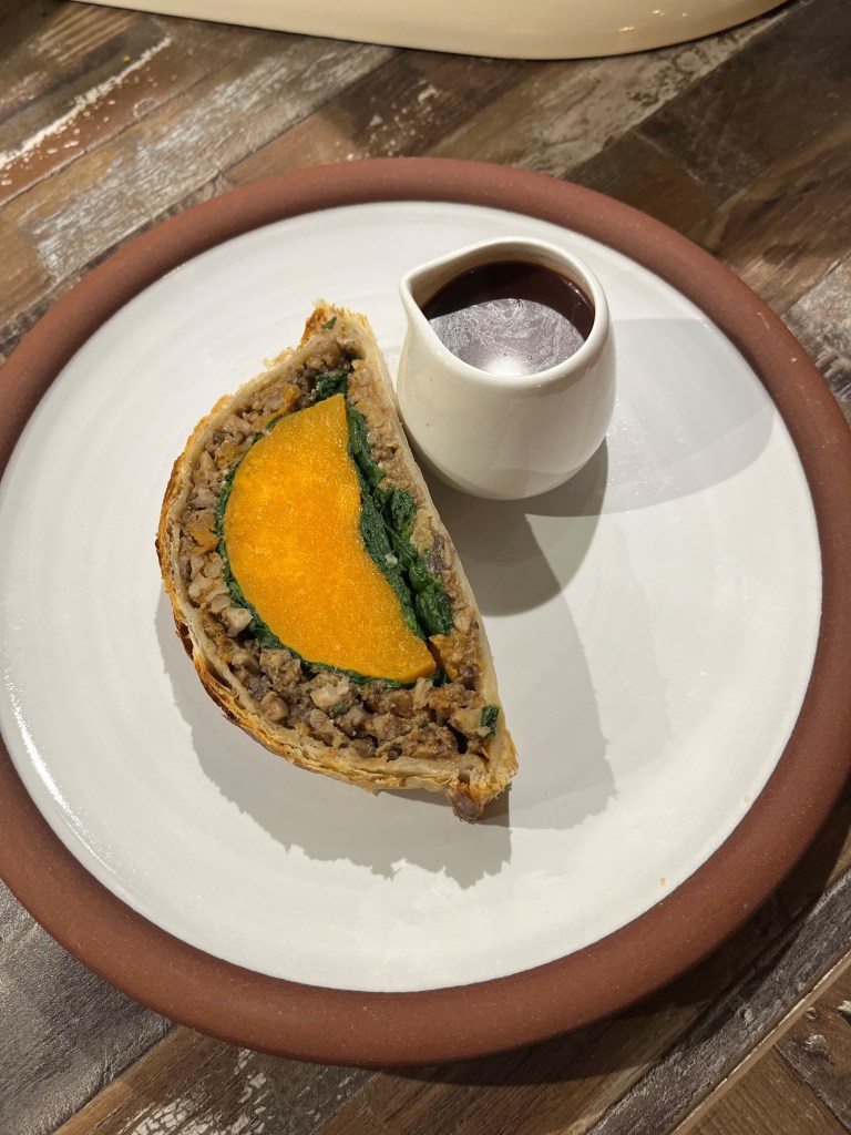 Butternut Squash Wellington is an impressive main and perfect for Christmas day. You can add whatever flavors you like to the duxelles, all you need to do is make sure the moisture content of weather you have is minimal and it will work.